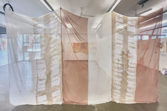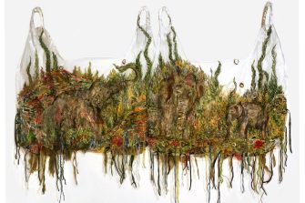 Judges’ comments: Rampal’s work is emotionally powerful, working at an impressive scale that immediately grabs your attention. The materials have been carefully chosen, even down to patterns on the fabric, the clay pots, and the materiality of hessian sacks, giving the work cultural specificity and opening up questions about form, content and meaning. The sacks evoke bodily forms that have had violence inflicted upon them but also have the potential to cause harm, giving a sense of foreboding to the work. Overall, the work is well resolved and deftly uses form, materiality, and colour to speak to important and complex issues that open up multiple interpretations for the viewer.